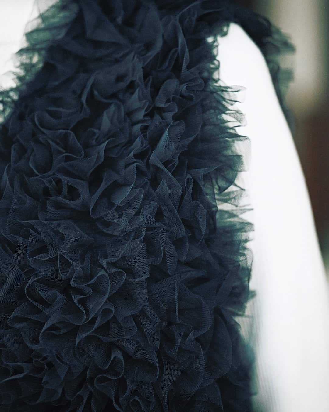 去年春に大人気だったミニ丈のチュールジレがパワーアップして登場。フリルチュールを別生地に縫い留めたクチュール感ある手の込んだ素材を使用。チュールは上から下に縦方向に向かっているので視線を縦に誘導し、着膨れの心配なくすっきりと着られます。身頃にタックの入ったコクーンシルエットだからのっぺりとも見えません。季節を選ばず長くコーデに使えるのもポイント。自宅で手洗いも可能です。