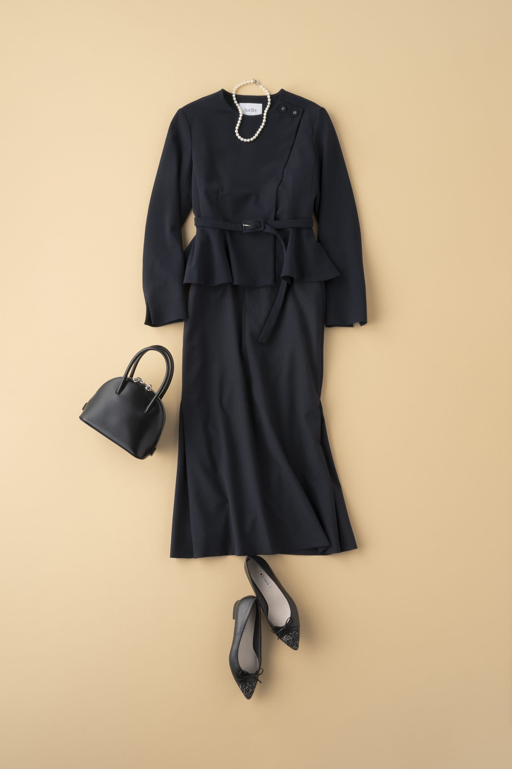 大人世代のセレモニーシーンで、やっぱり頼りになるのは王道ネイビー。きちんと感はもちろん、品の良さや信頼感まで自然と纏えるからこその“安心感”があります。スカート派なら、膝下丈のスカートにウエストマークのジャケットを合わせるだけで、コンサバになりすぎず、きちんと見えとスタイルアップを同時に叶えられます。小物はブラックで引き締めて、足元はあえてフラットを選ぶと程よい抜け感に。シルエット選びを変えるだけで、今の気分に心地よく馴染むセレモニースタイルに更新できます。
