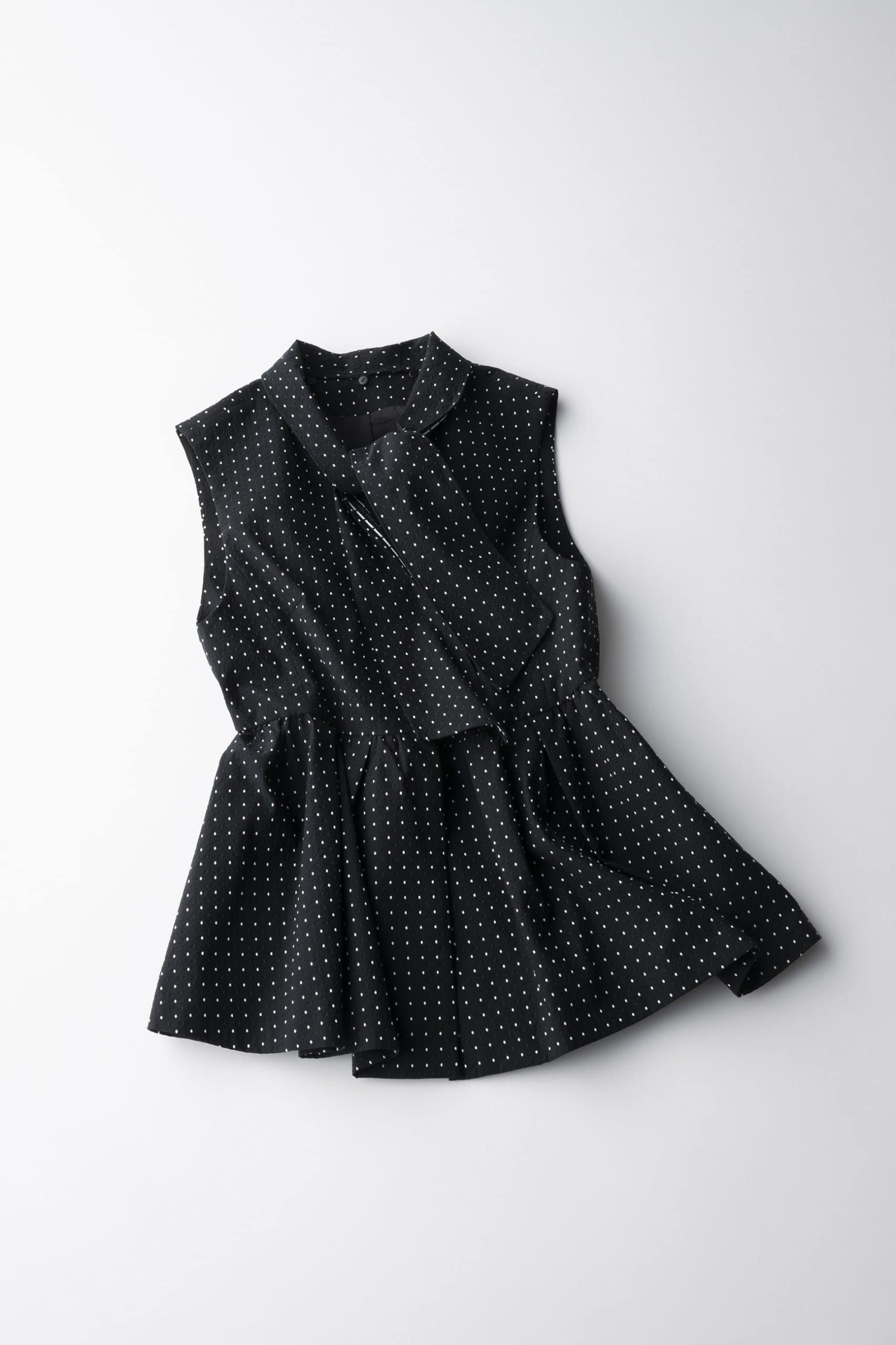 女子会ランチの日は、ほんのり華やぐペプラムジレブラウスが大活躍。凹凸あるドット柄ジャガード差材の立体感あるディテールは、着るだけでコーデに奥行きと品の良さが生まれます。ペプラムシルエットが気になる腰回りをカバーしてくれるのも嬉しいポイント。インは黒タートルで引き締めて甘さを程よくセーブ。ゆるっとデニムでカジュアルダウンして、足元はシルバーパンプスで軽やかな抜け感を。気分も上がるピンクのミニバッグで可愛げをプラスして、大人のきれいめカジュアルスタイルに。