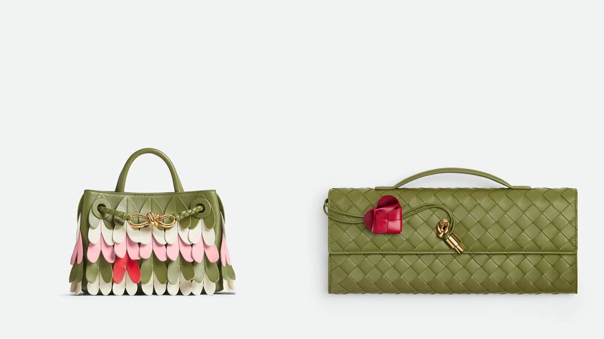 (左から)「ミニアンディアーモ」¥1,100,000(H15 x W20.5 x D7.5 cm)「アンディアーモクラッチ」¥539,000(H13 x W31 x D3 cm)