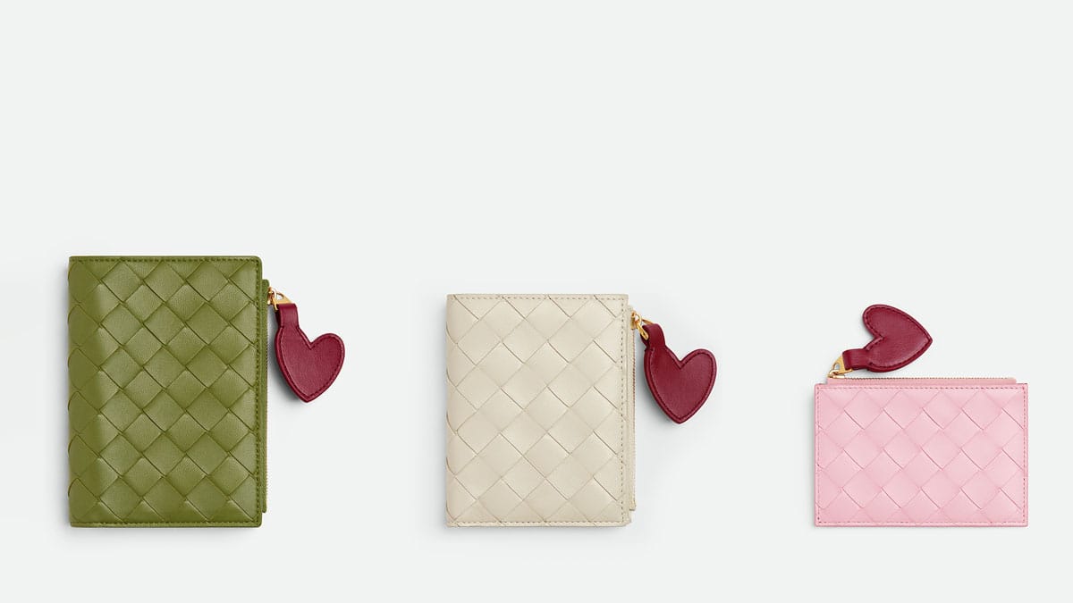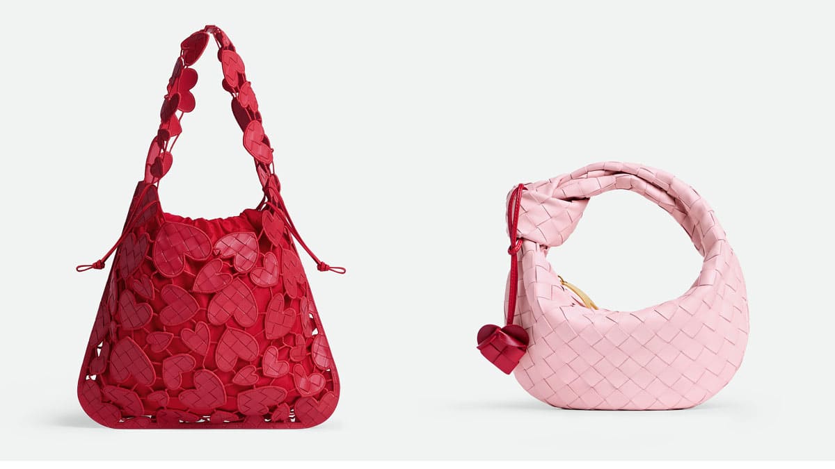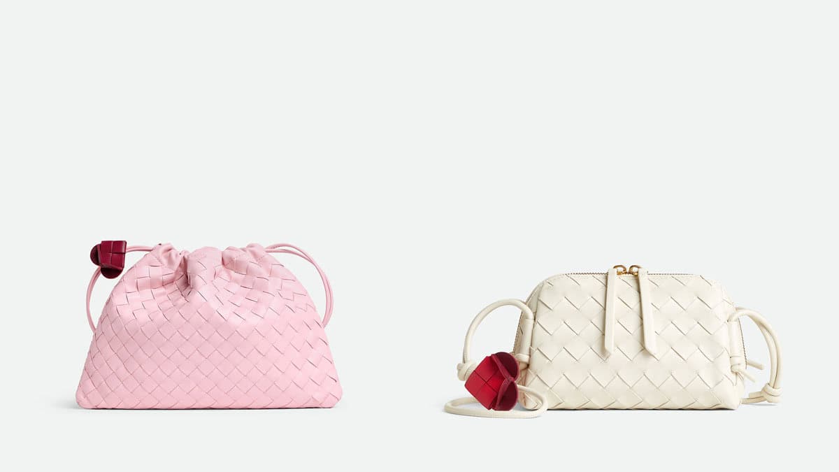 「ダストバッグ」と「コンサートポーチ」に取り入れたハート型チャームはイントレチャート技法で制作され、コントラストカラーのリップスティックレッドがさりげないアクセントに。チャームは取り外し可能なので、アレンジを楽しむことができます。