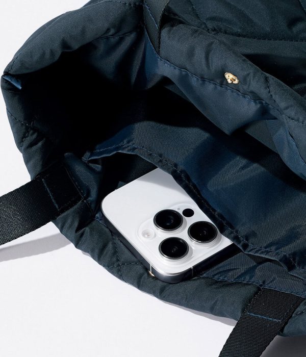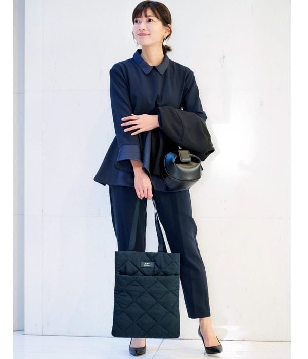 PCがしっかり入るからお仕事では必須。PCケースの必要がないから、荷物が重くならないのも嬉しい。上品なネイビーはコーデを高見えしてくれます。