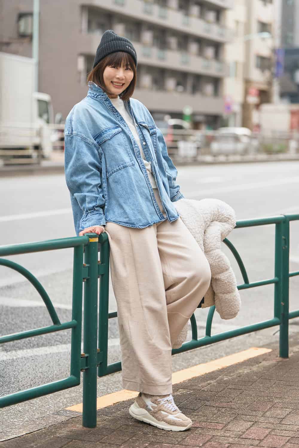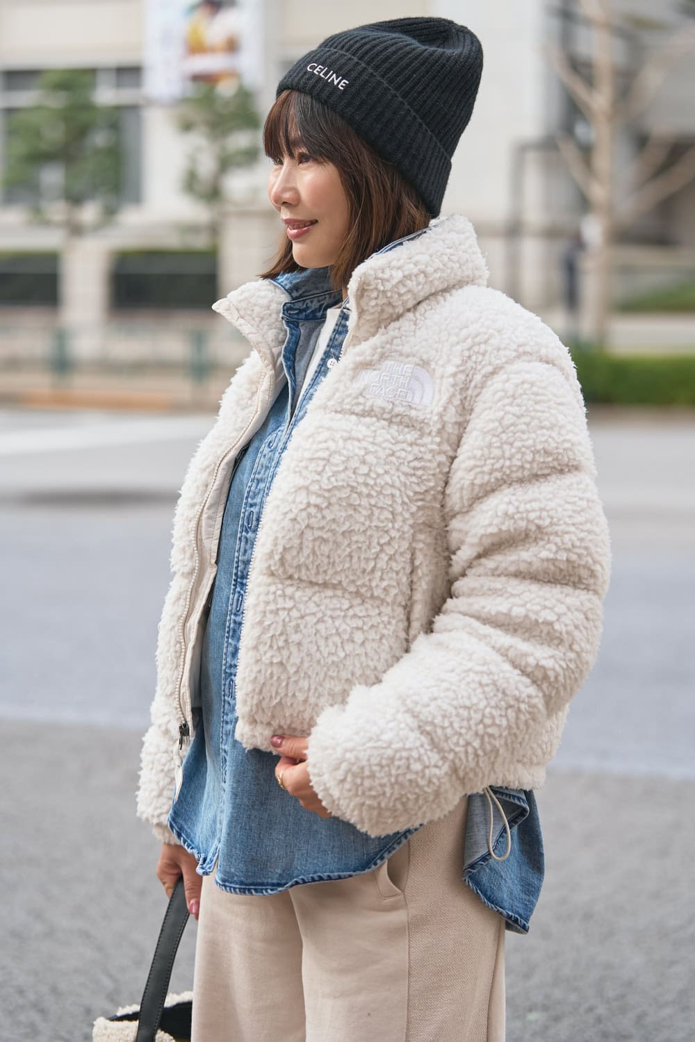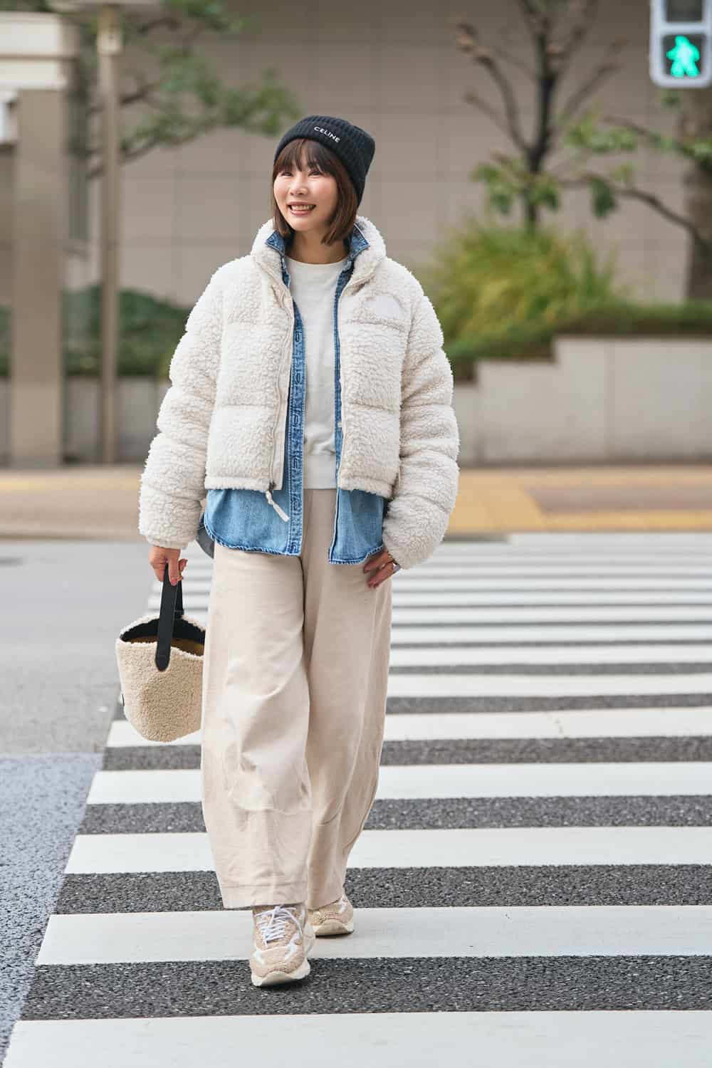 【ホワイト】スエットの日も頼れるボアダウンスタイルでかわいさを盛る