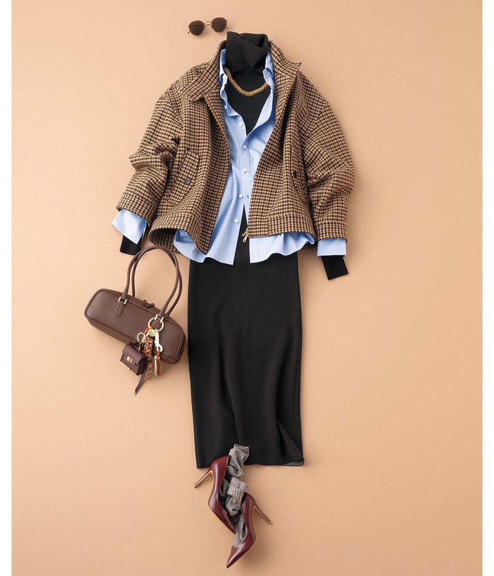 チェック柄JK × ニットスカートで女っぽくお仕事スタート。