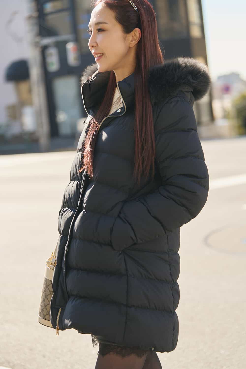 ★ 女性らしさ際立つファーフードダウン合わせで、冬スタイルを上品に