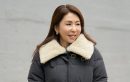 「黒のダウンはすでに持っているため、今年はネイビーを選びました。息子のサッカーの応援や真冬の韓国旅行で着るために派手になり過ぎないシックなデザインを。シックな色でも襟の白ボアが顔まわりを明るく見せてくれます。コーデが地味にならないように、ダウンの下には英字刺繍カーディガンを合わせ、重く見えがちな冬スタイルを華やかにまとめました」