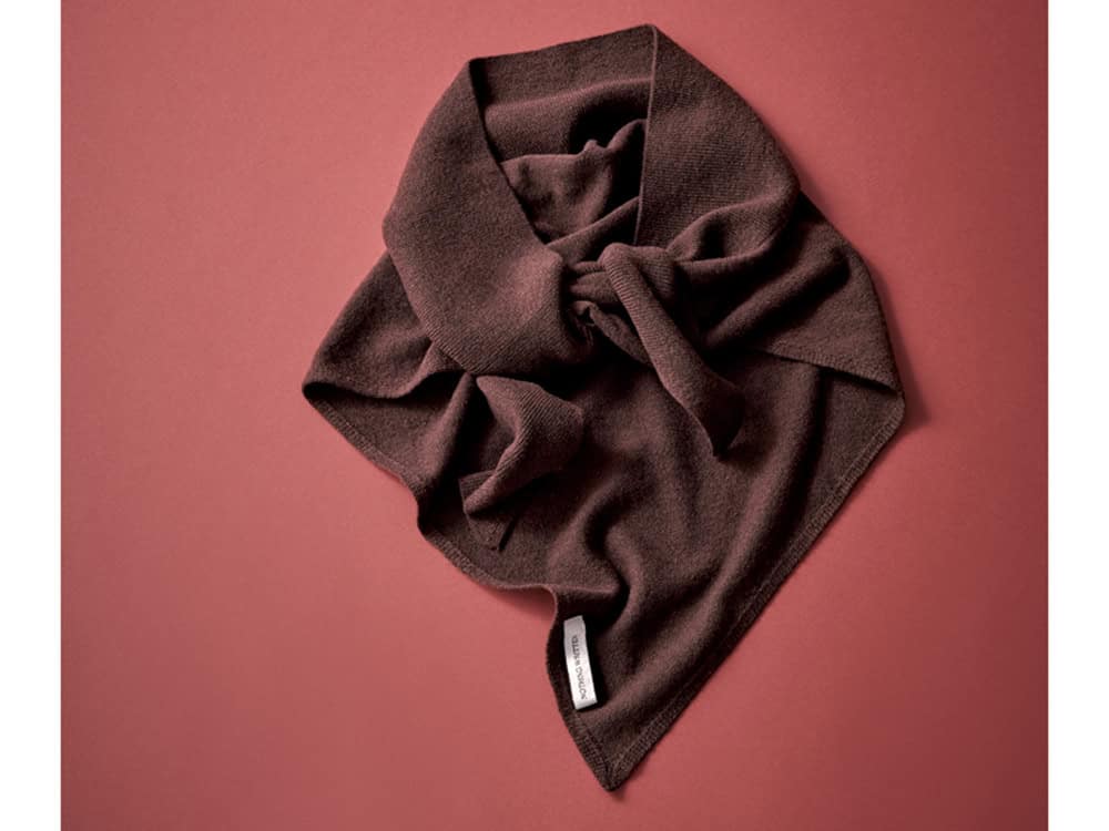 韓流スターが頭にショールを巻くスタイルを披露し流行。大判三角形で首元も収まりよく巻ける。(スタイリスト私物)