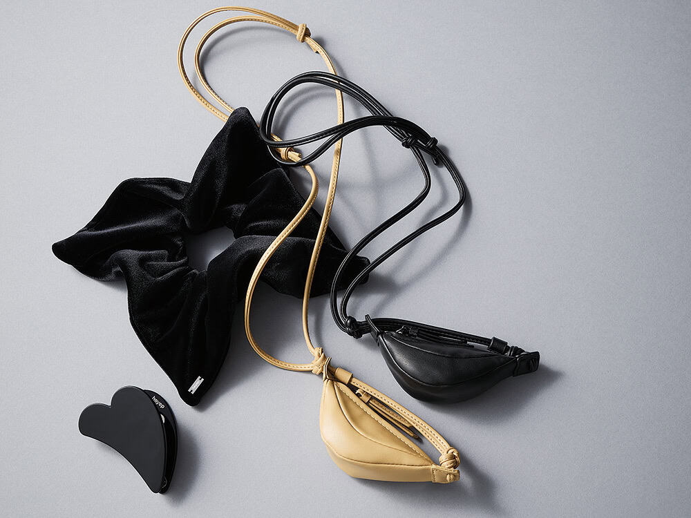 Archivépkeのアクセサリーバッグ(黒黄ともにライター私物)シュシュ¥6,050(heyep)ヘアクリップ¥6,490(heyep/ル タロン グリーズ ルミネ新宿店)