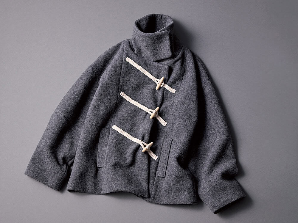 カタログ撮影で使用してすぐにリアル買いしました。スタンドネックと斜めの紐がお気に入り。グレーのワントーンで着こなしたいです。