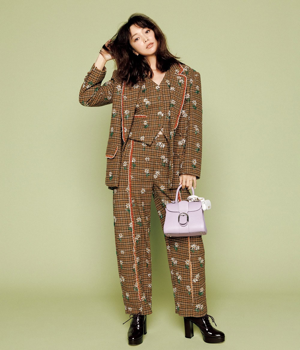 ビーズジャケット¥66,000ジレ¥34,100パンツ¥52,800(すべてセリア ビー/H3Oファッションビュロー)バッグ¥933,900AirPodsケース¥80,300ストラップ¥62,700(すべてデルヴォー)シューズ¥181,500(ジャンヴィト ロッシ/ジャンヴィト ロッシ ジャパン)靴下¥1,980(靴下屋/Tabio)ネックレス¥1,045,000ピアス¥77,000リング〈右手〉人差し指¥792,000薬指¥55,000親指¥280,500〈左手〉人差し指¥495,000薬指¥390,500(すべてシハラ/シハラ トウキョウ)
