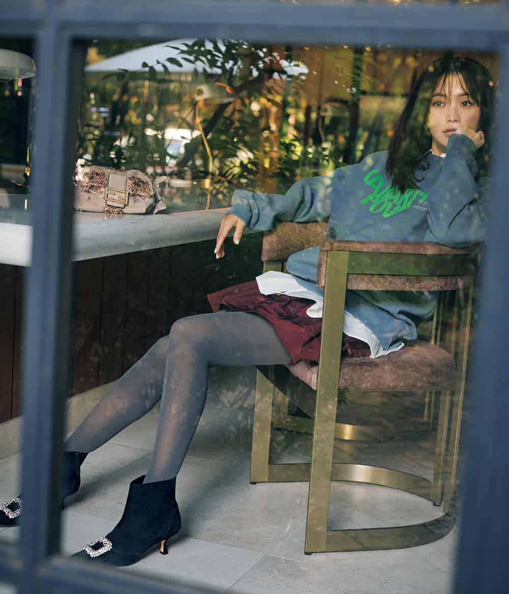 大物買いのアウターは長く着られるものを。今年はレザージャケットがあると手持ちの服が新鮮になりそう、と何となく思っていましたが、それを求めてショップを渡り歩く時間もなかなか取れないので、もしどこかで出合えたら……くらいの気持ちで。そんな中、ふらっと入った〝H BEAUTY & YOUTH〟で理想のものを見つけて「運命!」と。オーバーシルエット、ヴィンテージ感のあるレザー、ほんのりブラウンがかったブラック。すべて完璧で、最後にお値段を見たら驚きの10万円台。10年は着倒す所存!