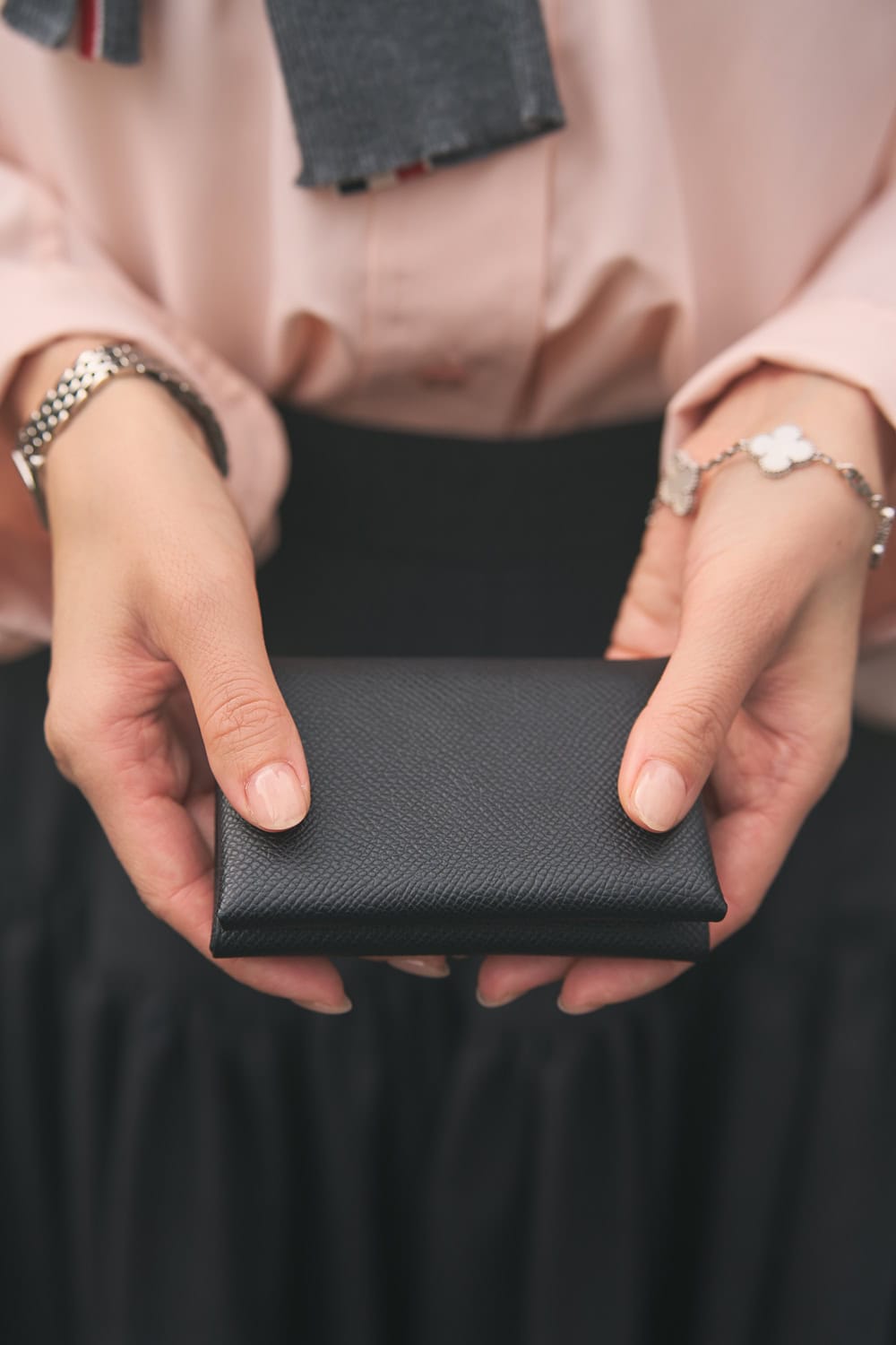 エルメスのバッグが増えていく中で、お財布も同じ世界観で揃えたいと思い選んだカルヴィデュオ。バッグはノワールを選ぶことが多いので、同じくノワールのこちらに出会えたのは、まさにご縁!迷いなく即決でした。コンパクトながら、小銭とカードをしっかり収納できる実用性も魅力です。