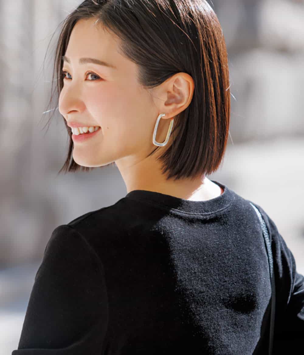 女友達と集まる時はレザービスチェを取り入れた冒険スタイルで挑みます。いつもなら黒パンツで揃えるところですがブラウンパンツで新鮮さも。アートップスにビスチェをレイヤーしてオシャレ感を更新。ボブへアのツヤに欠かせないのgiovanni/2chicモイスト ヘアセラム。コスメキッチンで買えるのも嬉しい。