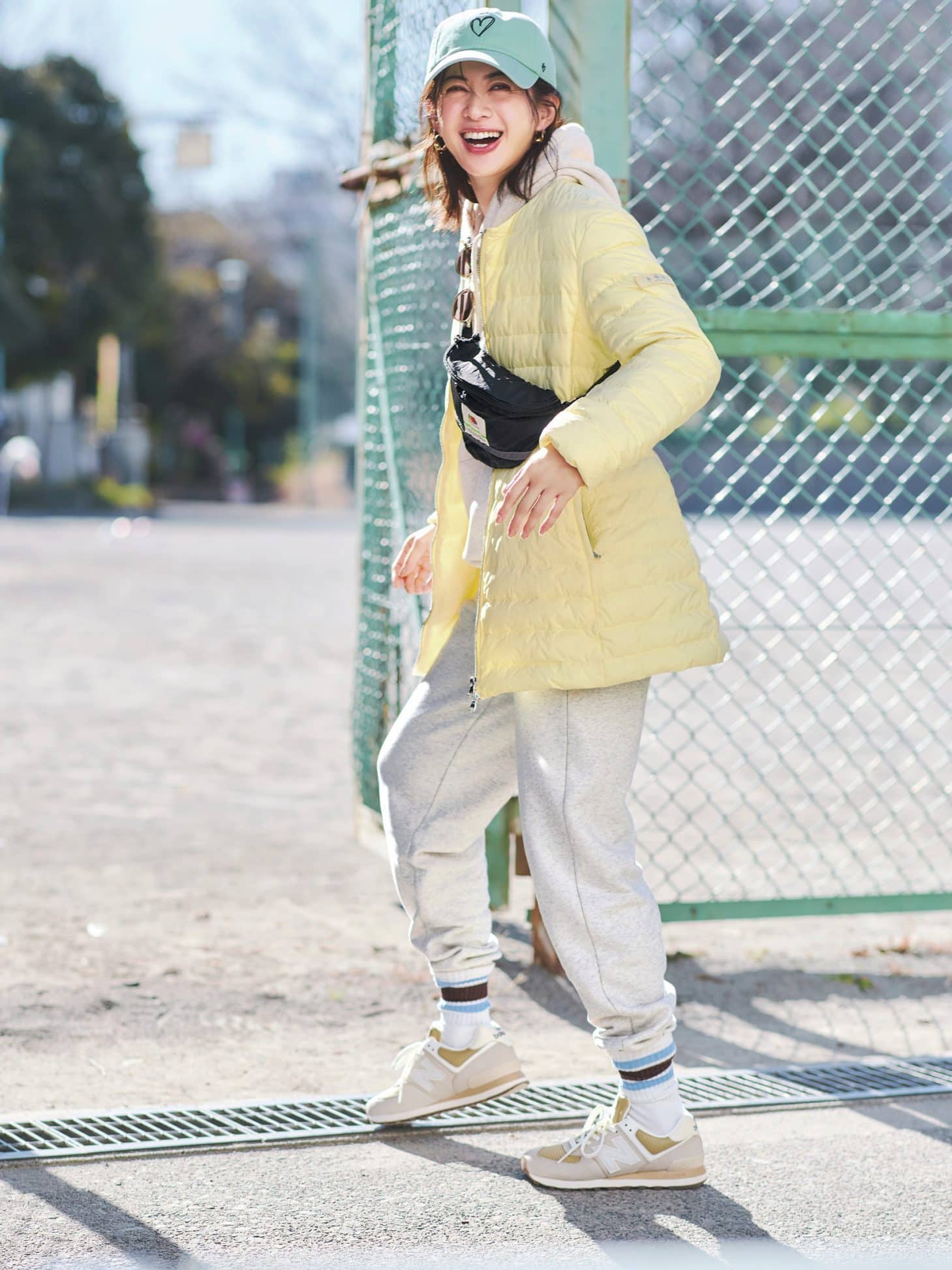 コート※ベルト付き¥121,000(タトラス/タトラス カスタマーセンター)パーカ¥7,150パンツ¥6,820バッグ¥2,970ソックス¥1,320(すべてフルーツオブザルーム/ギャレット)スニーカー¥14,960(ニューバランス/ニューバランス お客様相談室)キャップ¥4,400(フォーティーセブン)サングラス¥45,100(プロポ/プロポデザイン)ピアス¥39,600(リューク)
