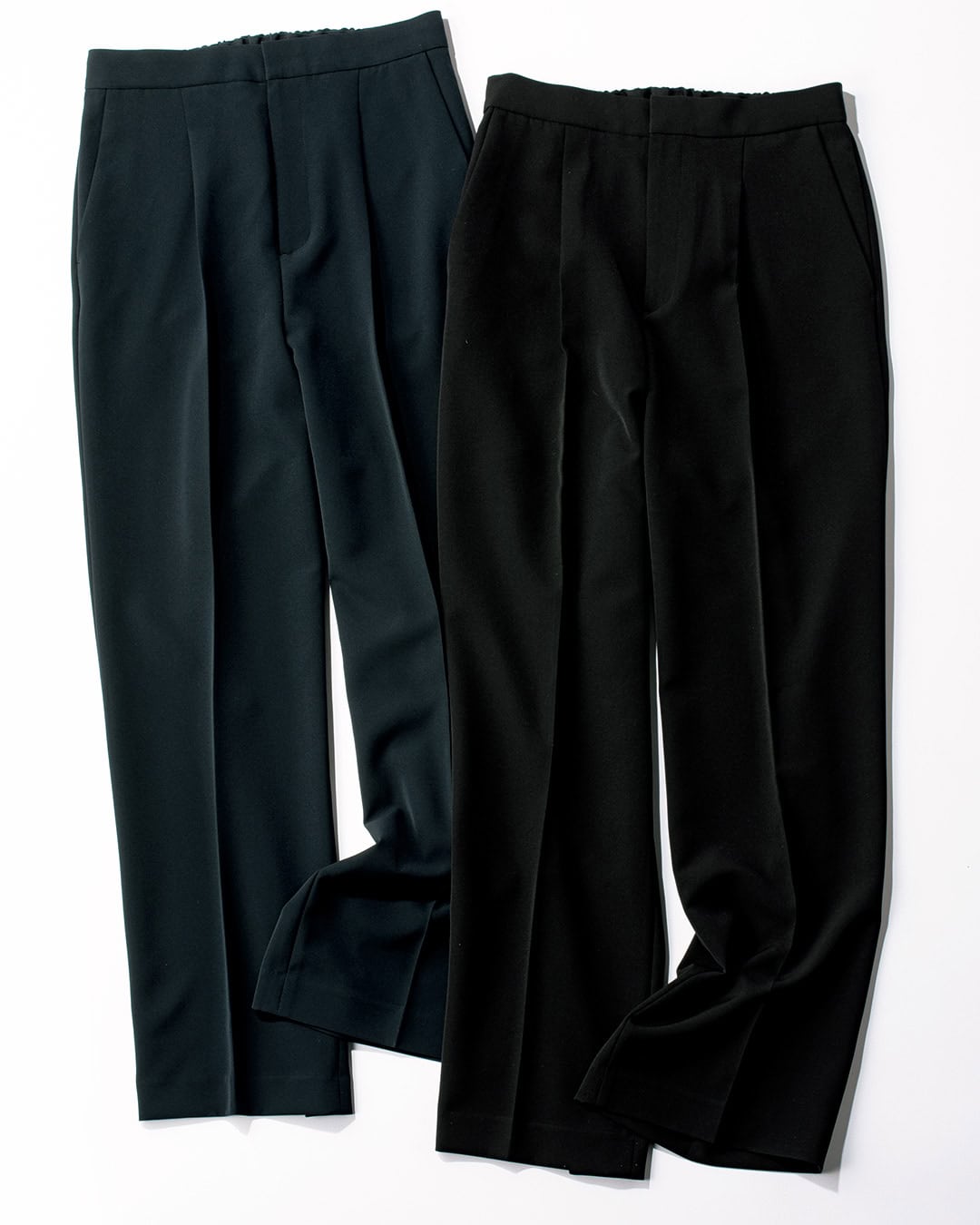 1つ持っておくと頼りになるのが、すっきり見えする黒パンツ。セレモニーにも使えて、普段の通勤や学校行事、オフにも活躍する2本をご紹介します。