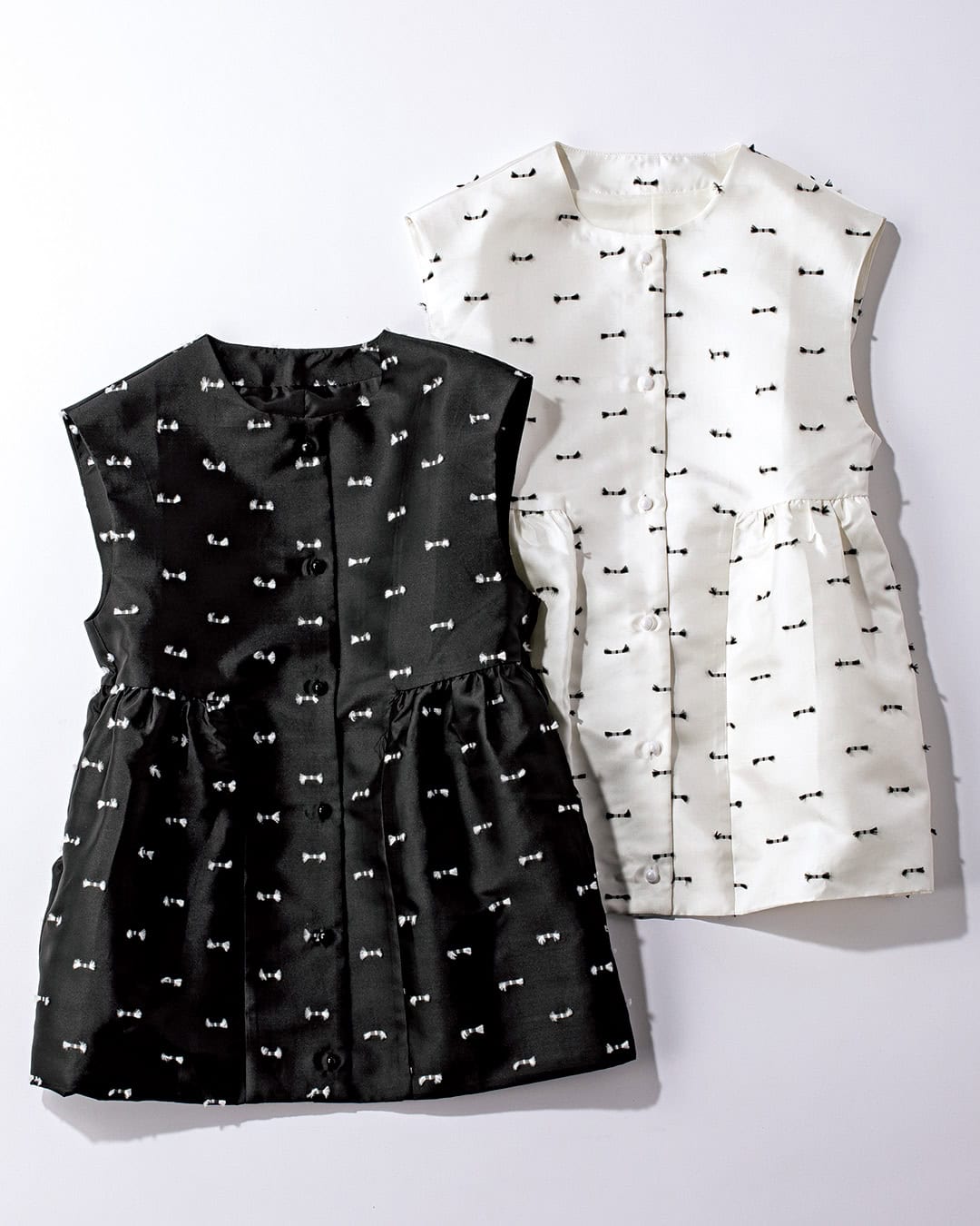 ②甘めママにぴったり!リボン風デザインの「華やぎジレ」