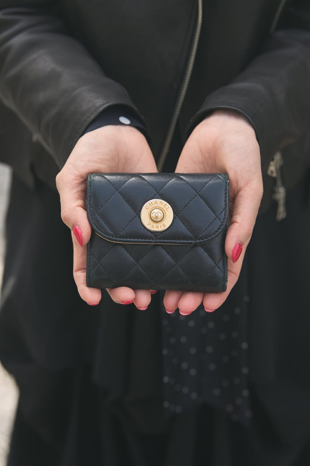 三つ折りのコンパクトなものが欲しくて探していた時に出会えたお財布。シャネルを象徴するキルティングに、ココマークの付いたパール調のデザインが可愛くて一目惚れして購入しました。内側がゴールドになっているところもお気に入りです。運気まで上がりそうな予感がしています。