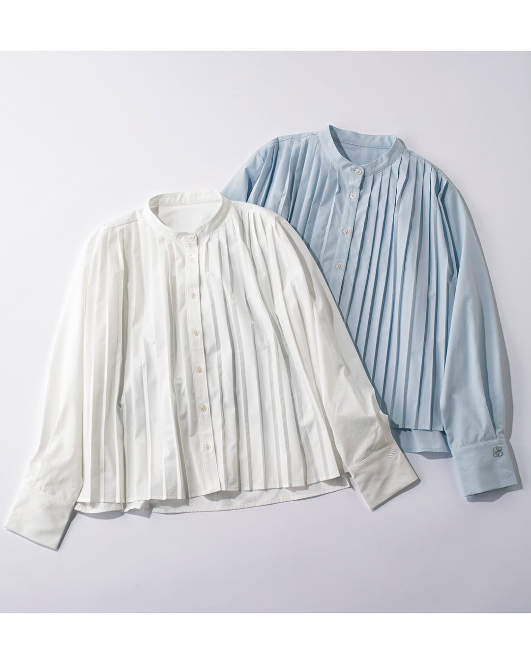 風に揺れる軽やかな素材を使用。ハンサムさを際立たせる長めのカフスとプリーツデザインは他にはない雰囲気を纏えます。裾をアウトしてきまるちょうどいい丈感もポイントに。