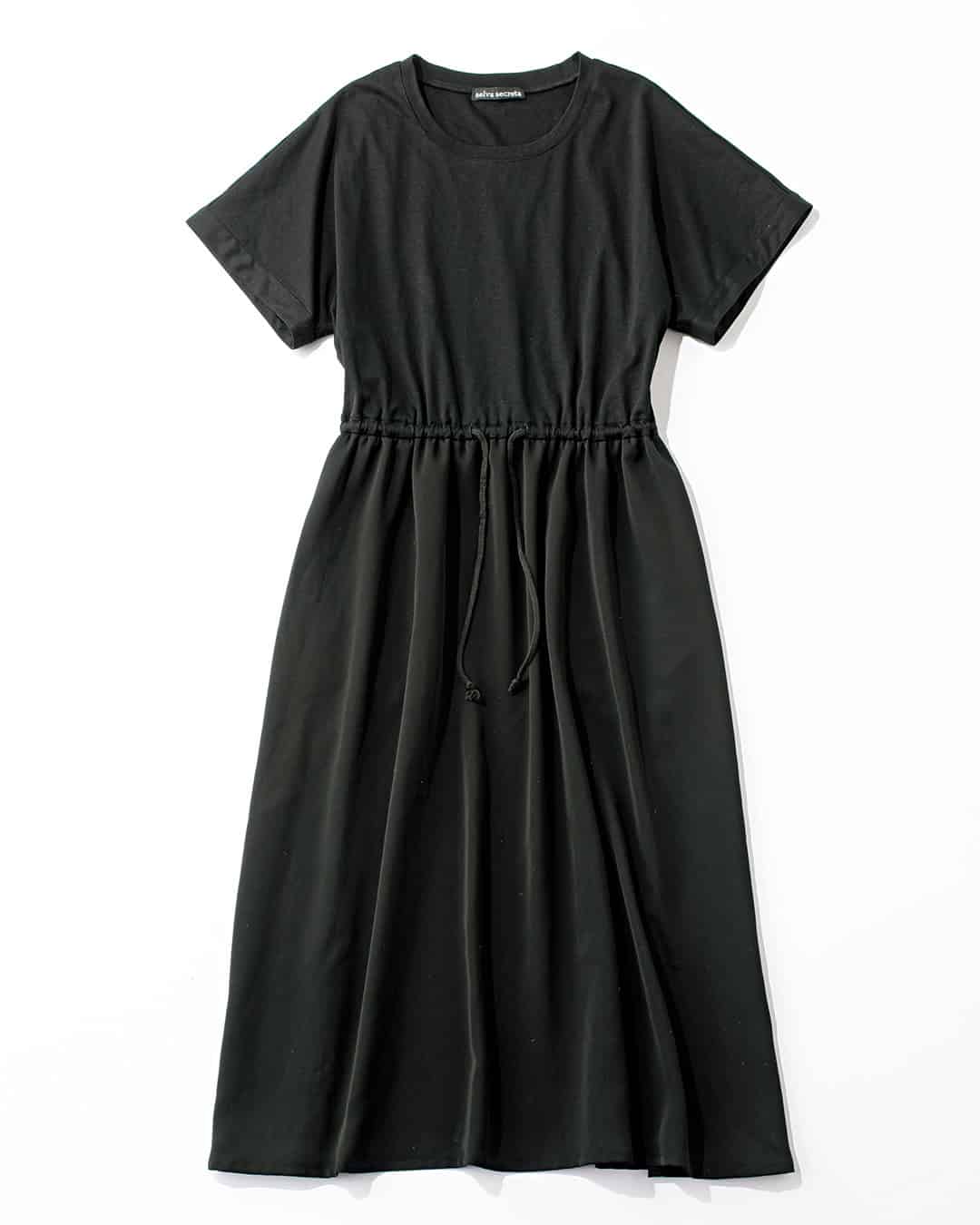 上半身とスカート部分の切り替えを高めに設定しているので脚を長く見せてくれます。ウエストはゴム紐で絞りの調整ができ、両サイドにはスマホが入るポケット付き。ブラックはSTORY限定の別注色。