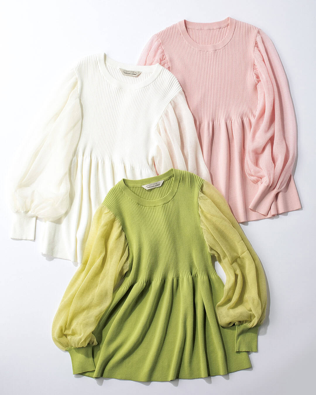 春までにデイリーコーデに仲間入りさせたいキレイ色服。ペプラムがスタリングに軽やかさをプラスしてくれる1枚です。袖はシアー素材にしているので、長いシーズン着用いただけます。PINKはストーリー別注色です。