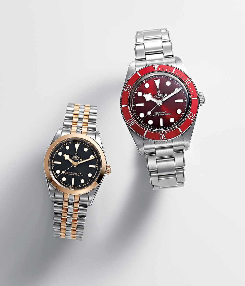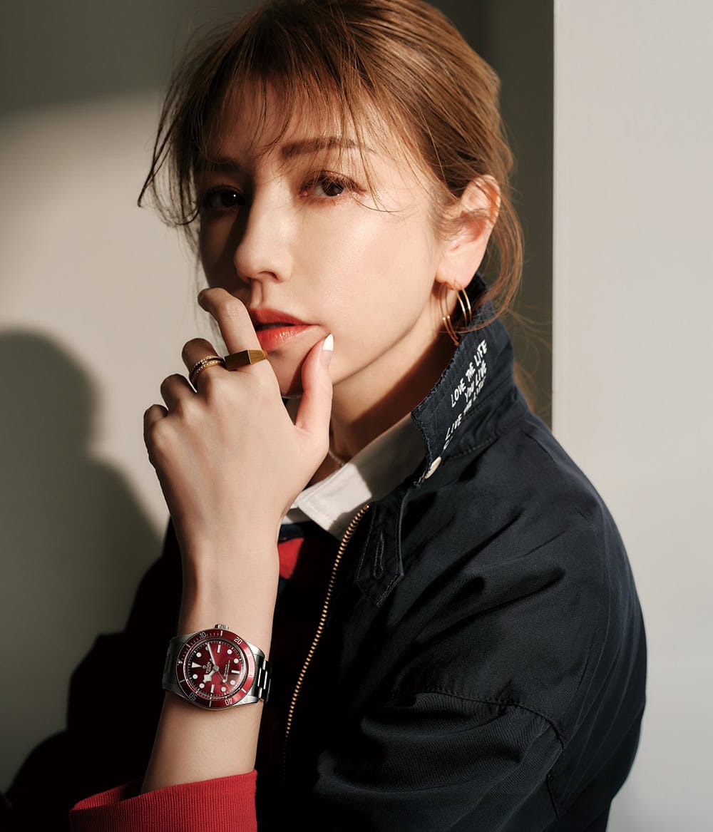 ブラックベイ 58は「ビッグ・クラウン」と呼ばれたチューダー初の200m防水を誇るダイバーズウォッチ、Ref.7924が発表された年にちなんで命名された。光沢のあるバーガンディダイアルとベゼルは、手元に艶とアクティブなイメージを与えてくれる、女性にこそ身につけてほしい新作モデルです。