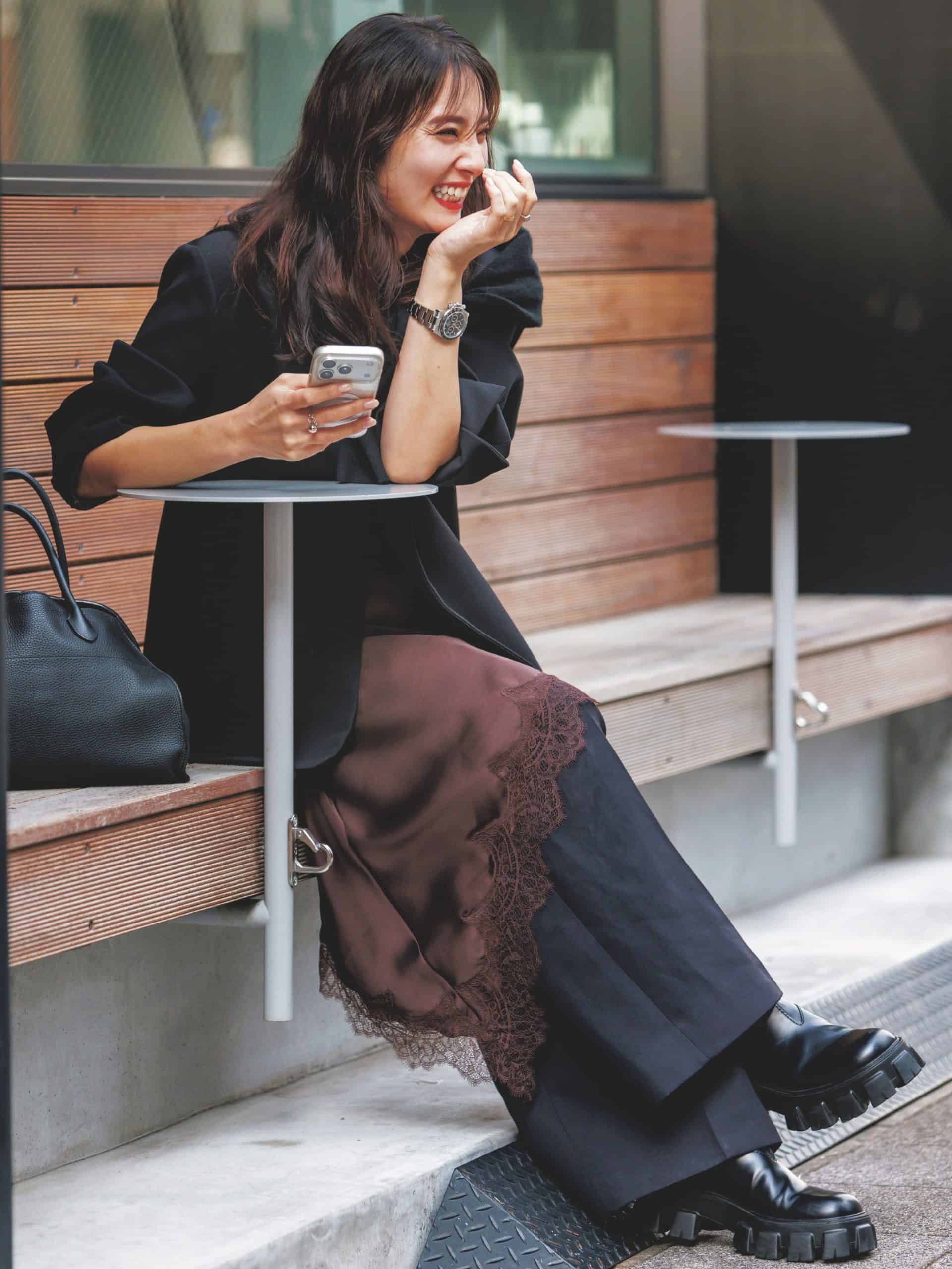 大人な「黒ブラウス」で品良く仕上げる