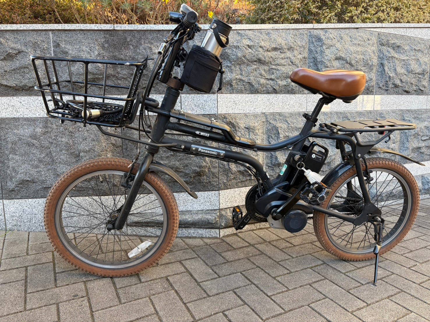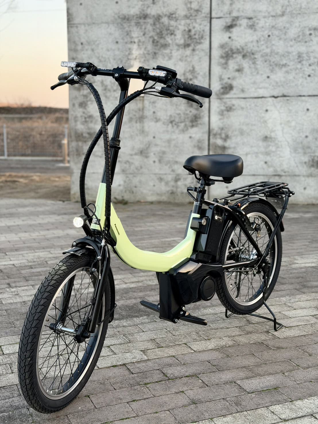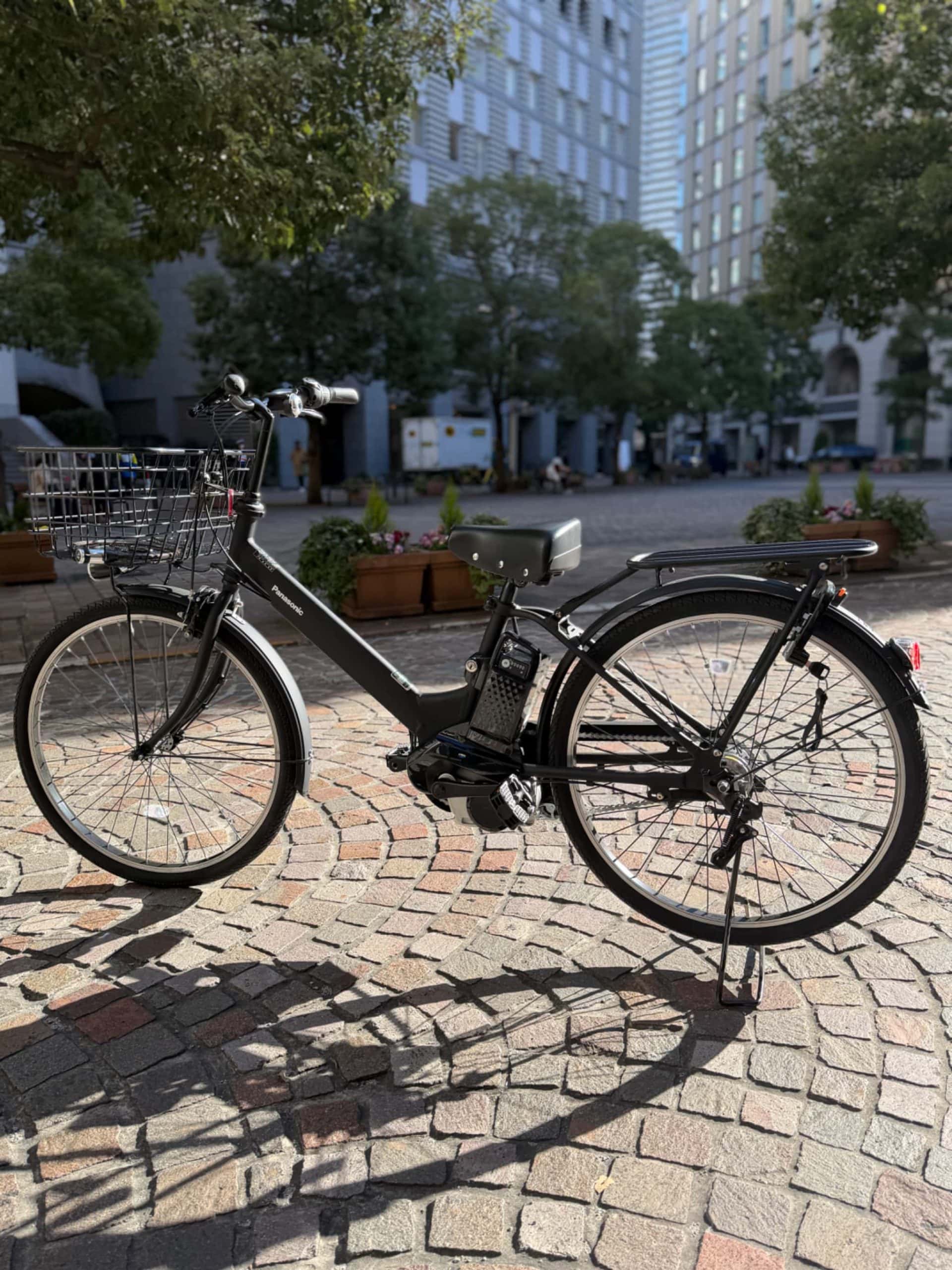 パナソニックのEZシリーズ艶消しマットブラックに、前カゴとボトルホルダーをカスタムしています。ヨガ帰りにそのまま近所へお買い物にも行けるように、トップスはゆったり、ボトムは暖かい裏起毛レギンスでこなれ感のある楽ちんコーデにしてみました。荷物も乗せられて実用性を確保しつつ、コンパクトで乗りやすい、毎日の生活に欠かせない私の相棒です!