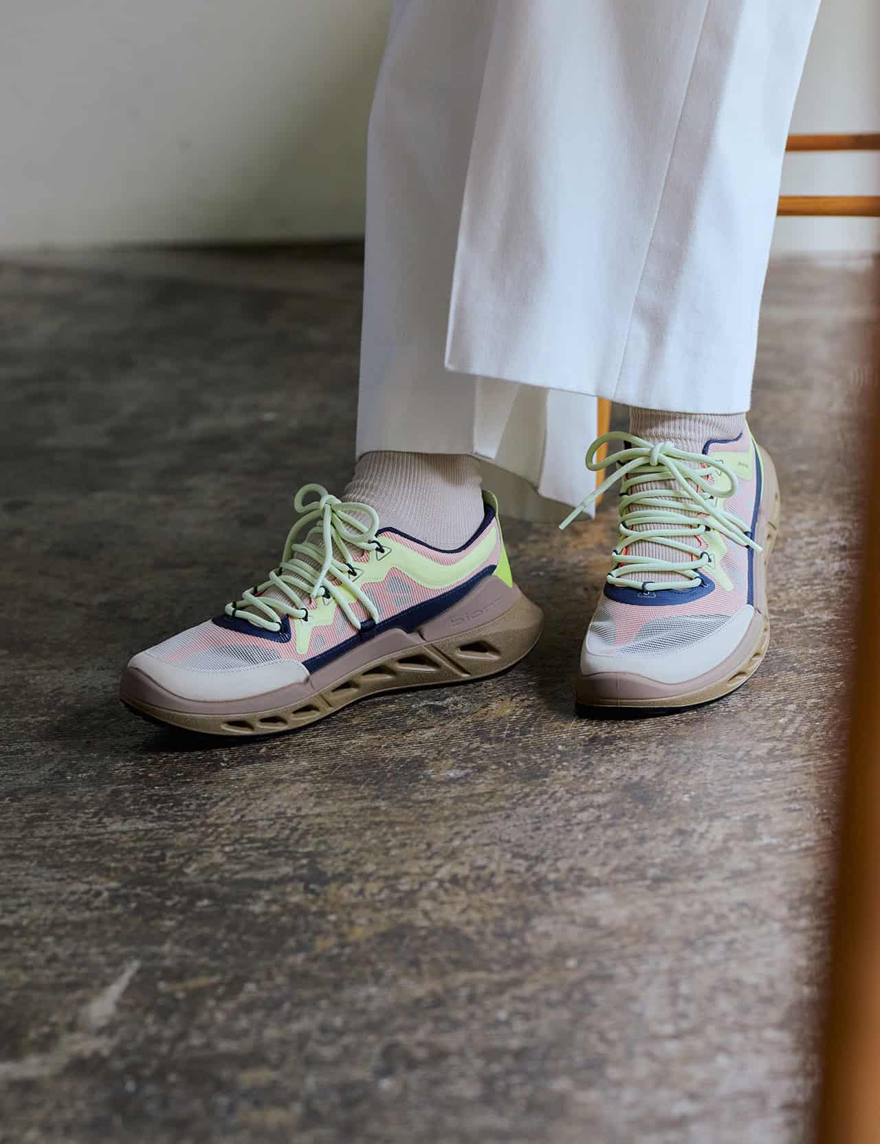 カラフルなのに品がいい大人のためのハイテクスニーカー。足を優しく包み込むようなホールド感とソールのしなやかなグリップ感、そして軽さは、履いた瞬間からクセになる心地よさです。自分軸のおしゃれを満喫したいママオフ時間はもちろん、機能性も求められる子どもとの時間にも大活躍の予感♪