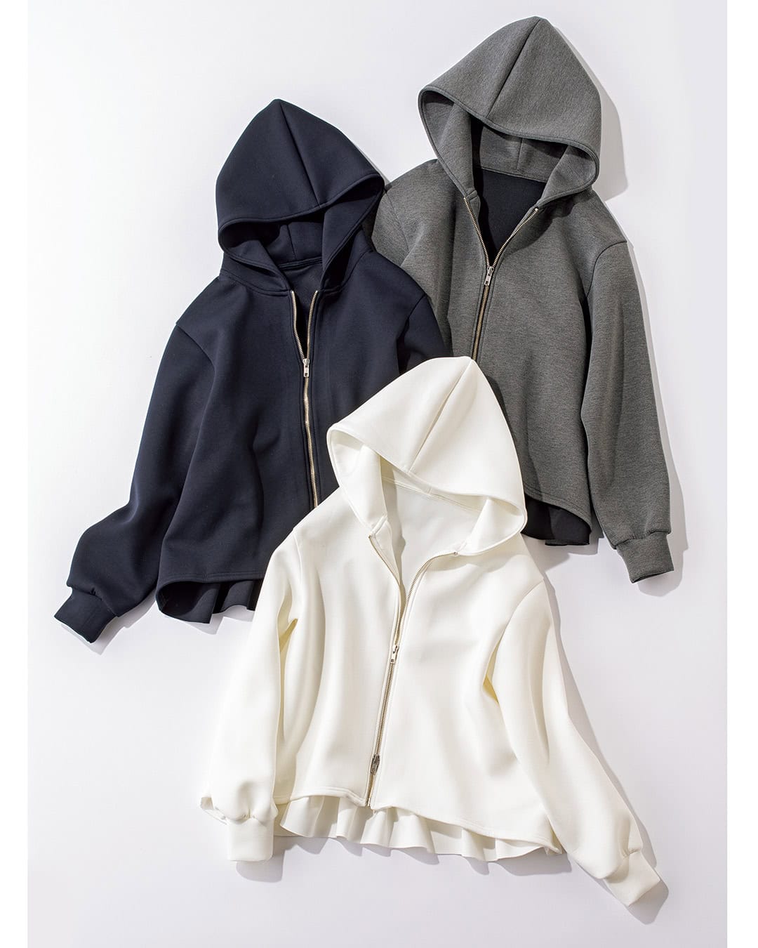 朝晩は冷える春に頼りになるパーカー&フーディー。そんなきれいめ派の40代にちょうどいいのが、ほどよく甘さを効かせたアイテムです。ラフさはありながら、品よくまとまるのが魅力的な3着を厳選しました。