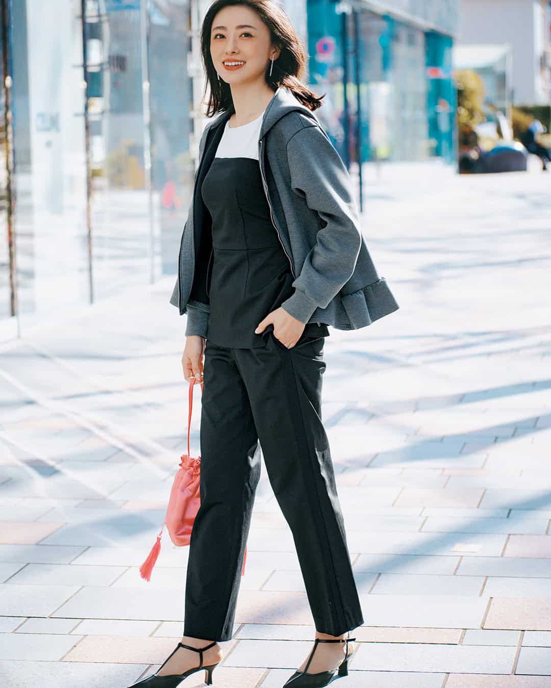 新しい季節の訪れに、どこか心が躍る今の時期は、オシャレも心機一転リスタートしたくなるもの。気持ちが上がる、映える甘服をピックアップしました。裾にあしらったフリルの甘さで、カジュアル服が苦手な人でも取り入れやすいデザインに。程よい厚みのポンチ素材は着られる時期も長く、屋外のイベントでも重宝します。美シルエットながらポケット付き。