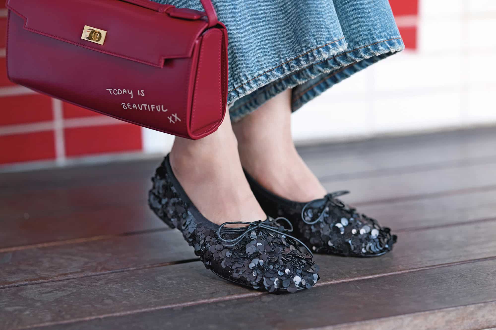 ラグジュアリーな「バレエシューズ」で定番「ブルーデニム」を格上げ