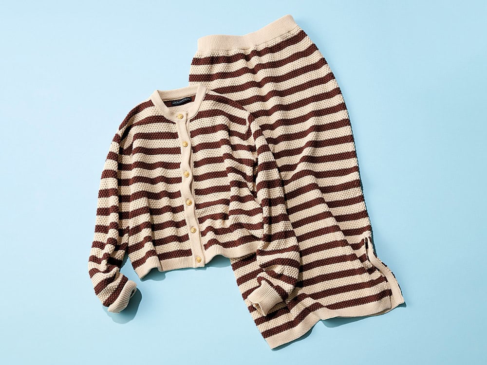 トレンド感がありつつ、落ち着いた雰囲気のベージュ×ブラウンボーダーが気に入りました。シアーな靴を合わせて軽やかに着たいです。