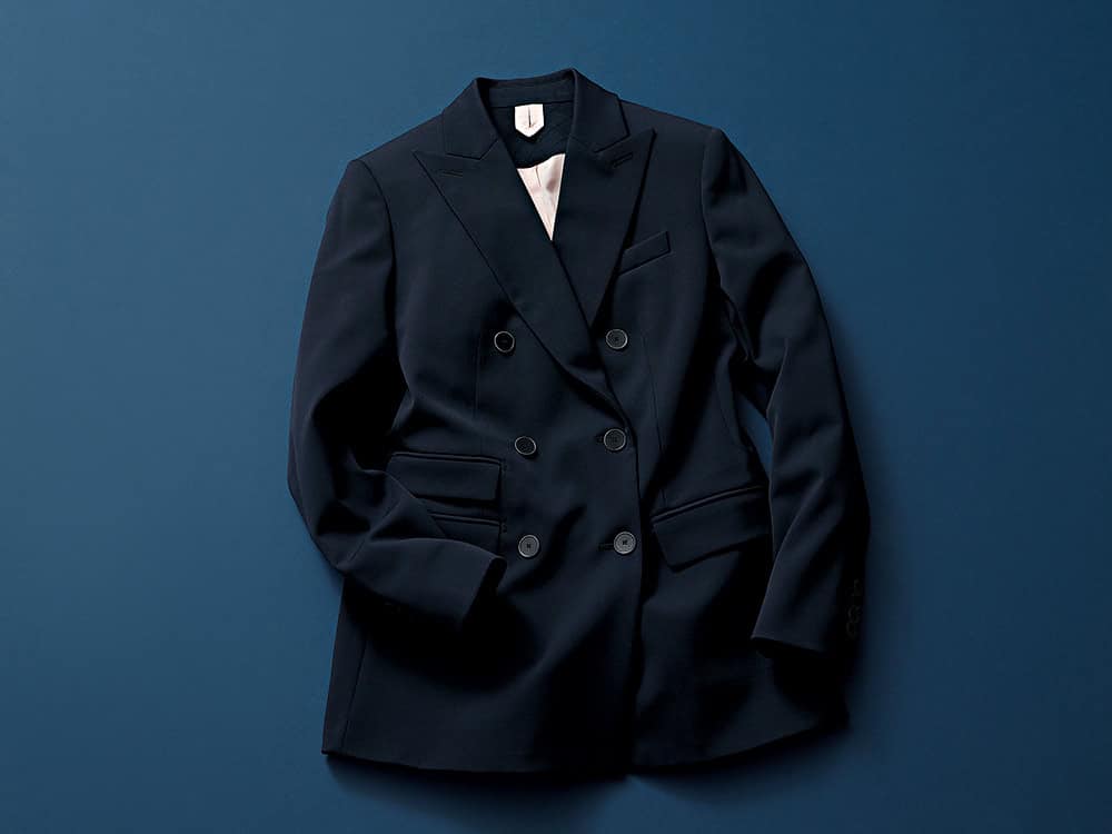 マニッシュなピークトラベルのダブルプレストジャケットは、永遠に愛されるクラシックデザインです。