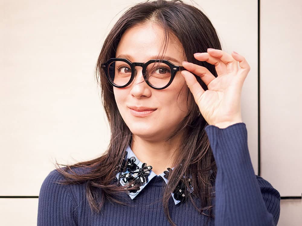 メガネ¥12,200(Zoff SMART with MAQuillAGE/ゾフ カスタマーサポート)ニット¥37,400(ソブ/フィルム)ピアス¥30,800(ete)リング¥42,900(ジャスティン デイビス/ジャック・オブオール・トレーズ プレスルーム)