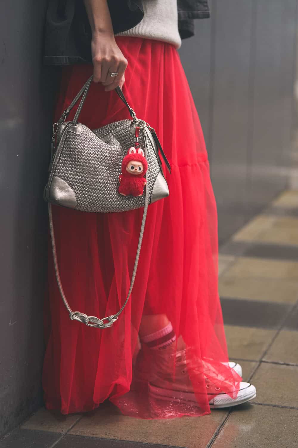 存在感抜群の「赤チュール」はコンバースで外す