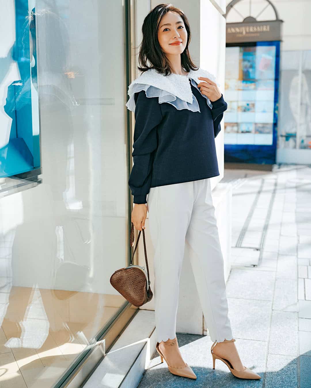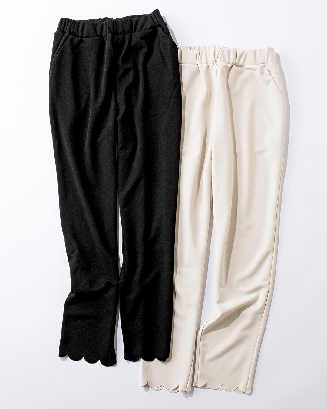 ②黒パン感覚でかなり使える!「裾スカラップパンツ」