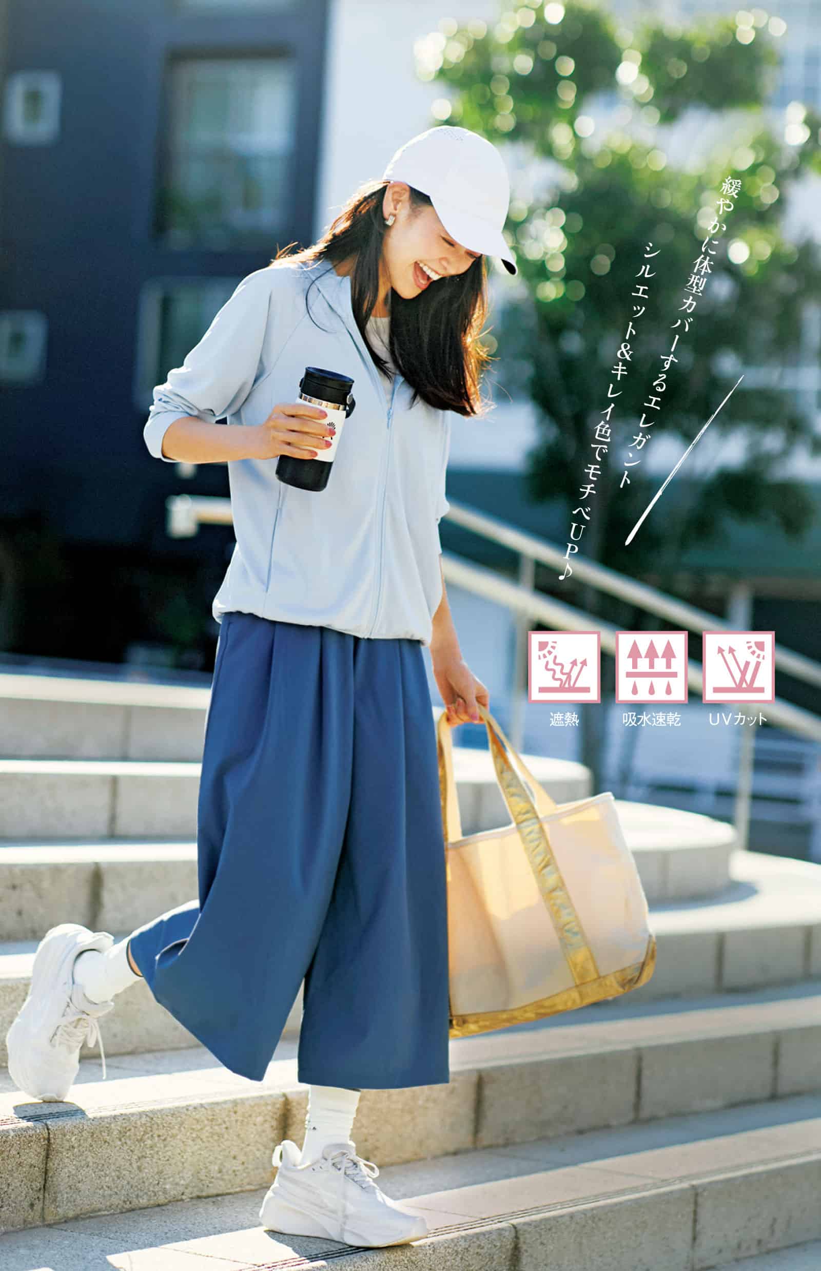 iCOOL遮熱UVカットジップアップパーカ¥2,499UVカット撥水スカーチョ¥2,999Tシャツ¥2,999キャップ¥1,999スニーカー¥9,999(すべてティゴラ/アルペン)その他/スタイリスト私物