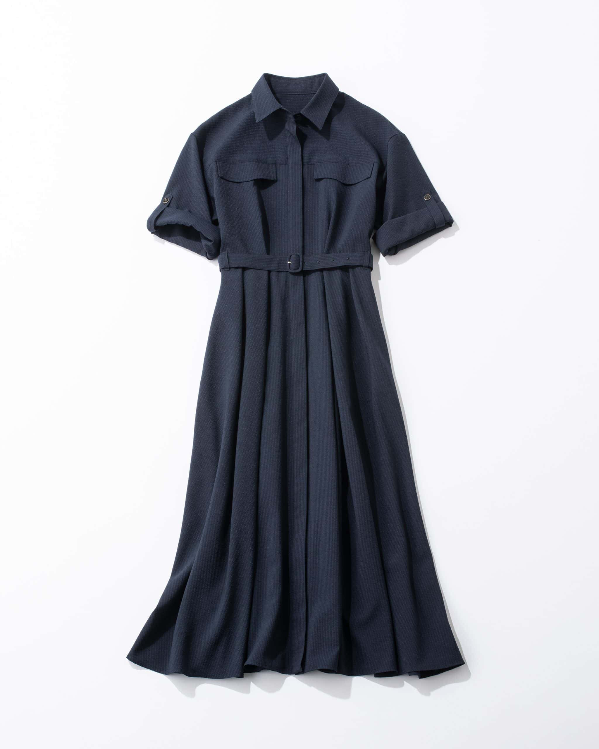 上質な日常に寄り添う一枚。盛夏まで快適に着られる軽やかなサッカー素材は、自宅で洗えてシワになりにくいのも魅力です。高めのベルト位置が視線を上げ、自然なスタイルアップを叶えます。二の腕をしっかり包む袖丈で安心感も。オンオフ自在に映える、大人のための上品ワンピースです。
