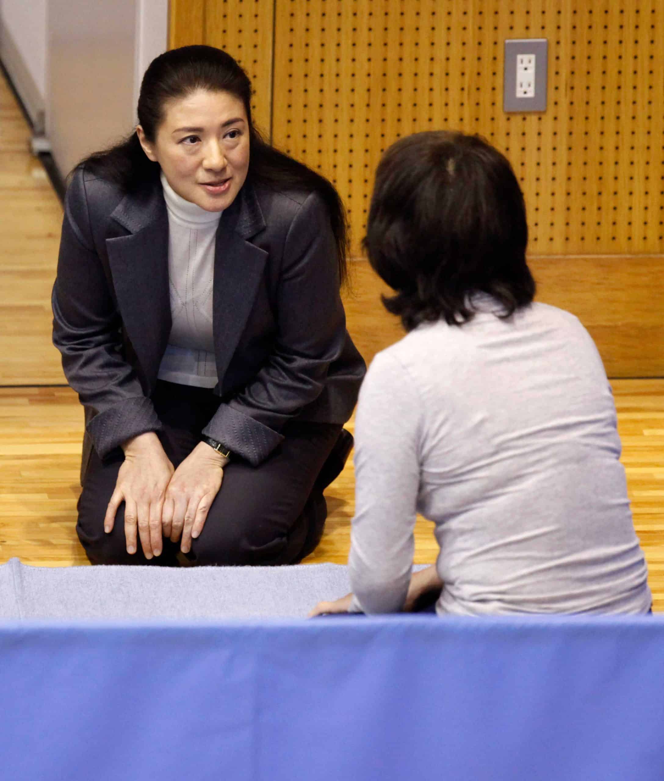 「この頃はまだ療養中でいらっしゃった雅子さま。皇居外でのお出ましは年に数回という時期でした。そんな中、お見舞いに訪れたこの時は、とり急ぎ身近なものをお召しになって駆け付けたというお気持ちが、装いにも表れていました。それだけ被災された方々に心を寄せたい思いが強くていらっしゃったのでしょう。とはいえ、無意識の中にも、被災した方々への気遣いか、動きやすいパンツスタイル、そして華やかすぎないグレーを選ばれていました。ご病気になり自身も辛い経験をされてきた雅子さまは、被災した方々の体験談を聞きながら深く共感し、時折涙ぐまれながら手を握られ、そのお姿を陛下が静かに見守られている光景が印象的でした」(つげさん)