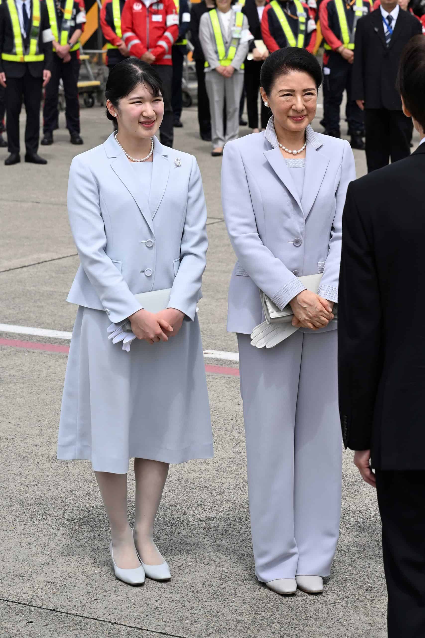 「沖縄へのご訪問は、雅子さま、愛子さまともにテーラードジャケット、淡いブルー系のそっくりとも言えるお召し物が印象的でした。戦後80年の節目の沖縄訪問で、『二度と戦争は起こさない』という平和への想いが、母と子、世代を超えてひとつである、同じであるというメッセージを視覚的に表現されているのでは? と感じました。戦没者慰霊のご訪問ではシックな装いが定番ですが、この年は戦後80年の節目。これから明るい未来が続いているという意味を込めて、黒やグレーではなく、爽やかで希望を感じる水色を、親子で選ばれたのかもしれません」(つげさん)
