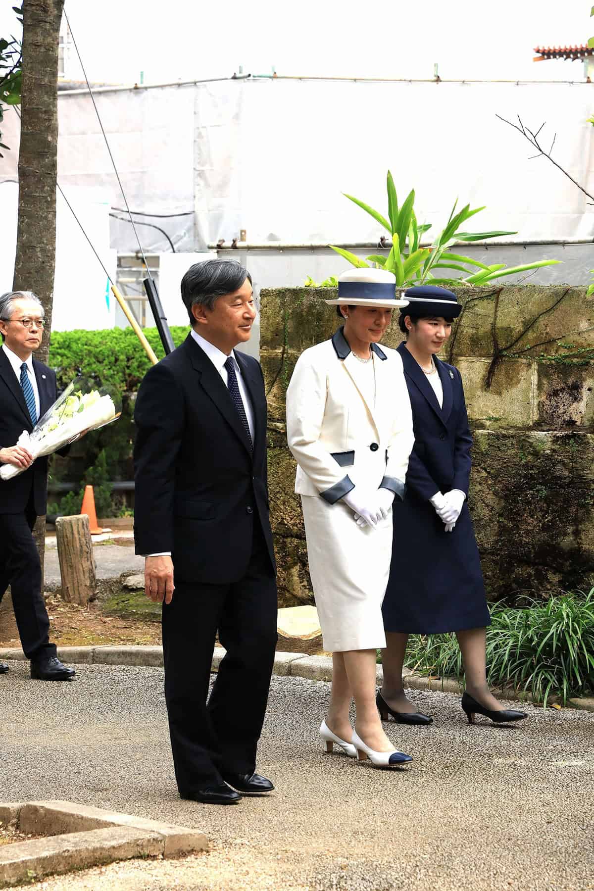 沖縄訪問の2日目、ご一家は小桜の塔に供花され対馬丸記念館へ。天皇陛下はネクタイで、雅子さまは衿や袖口のあしらいで、愛子さまは全身でネイビーを取り入れられ、ご一家でのお姿に“チーム”を感じる装いでした。昔からバイカラーを好まれている雅子さま。白をぴりっと引き締める異素材のネイビーのバイカラーは、オールホワイトよりも落ち着いた印象。愛子さまはインナーで白を取り入れ、親子で配色が逆になっていることまで計算されているようにお見受けしました。