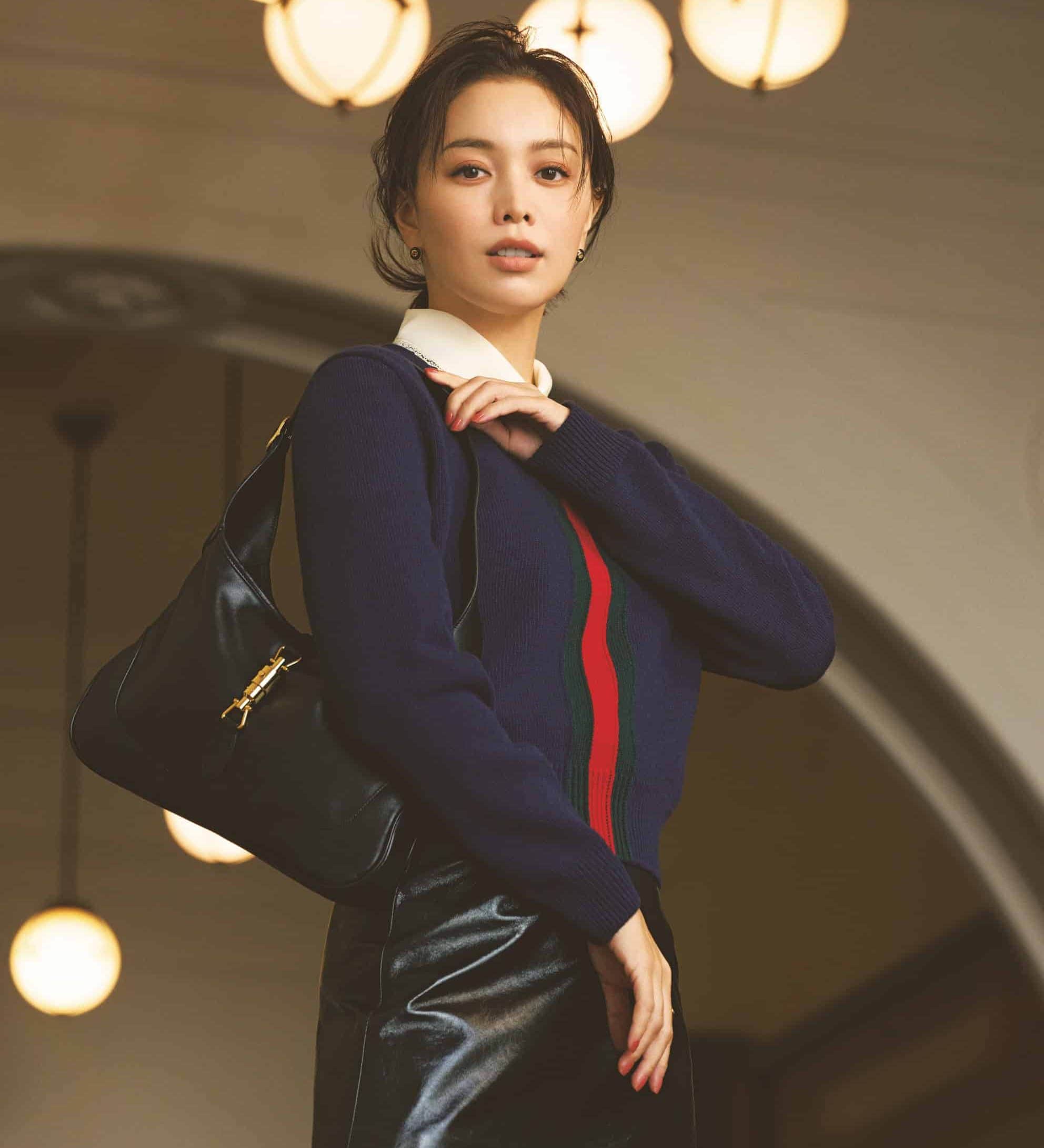 バッグ「グッチ ジャッキー 1961」W31.5×H22×D4.5㎝ ¥473,000ニット¥214,500ブラウス¥286,000スカート¥473,000ピアス¥313,500(すべてグッチ/グッチ クライアントサービス)