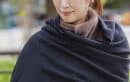 大判のニットストールはグレーを選んで抜け感を