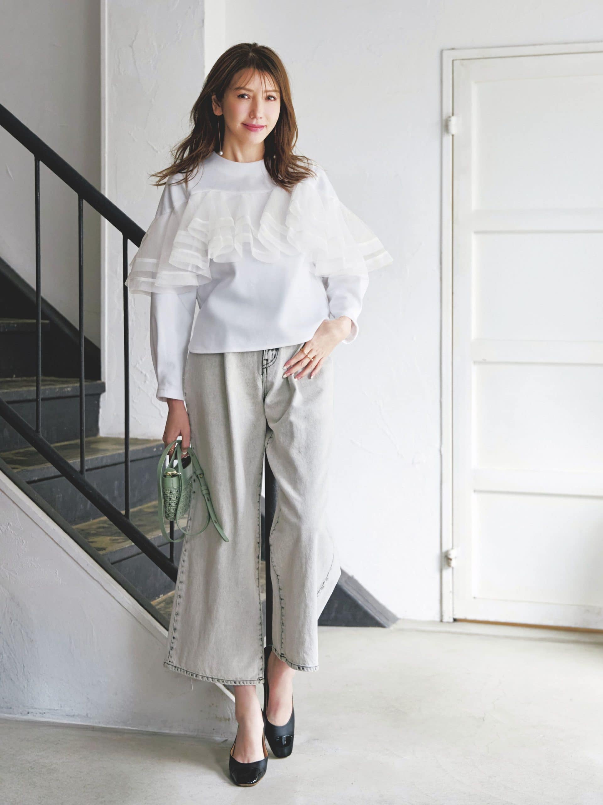 動きのある軽量フリルが春色パンツと相性抜群