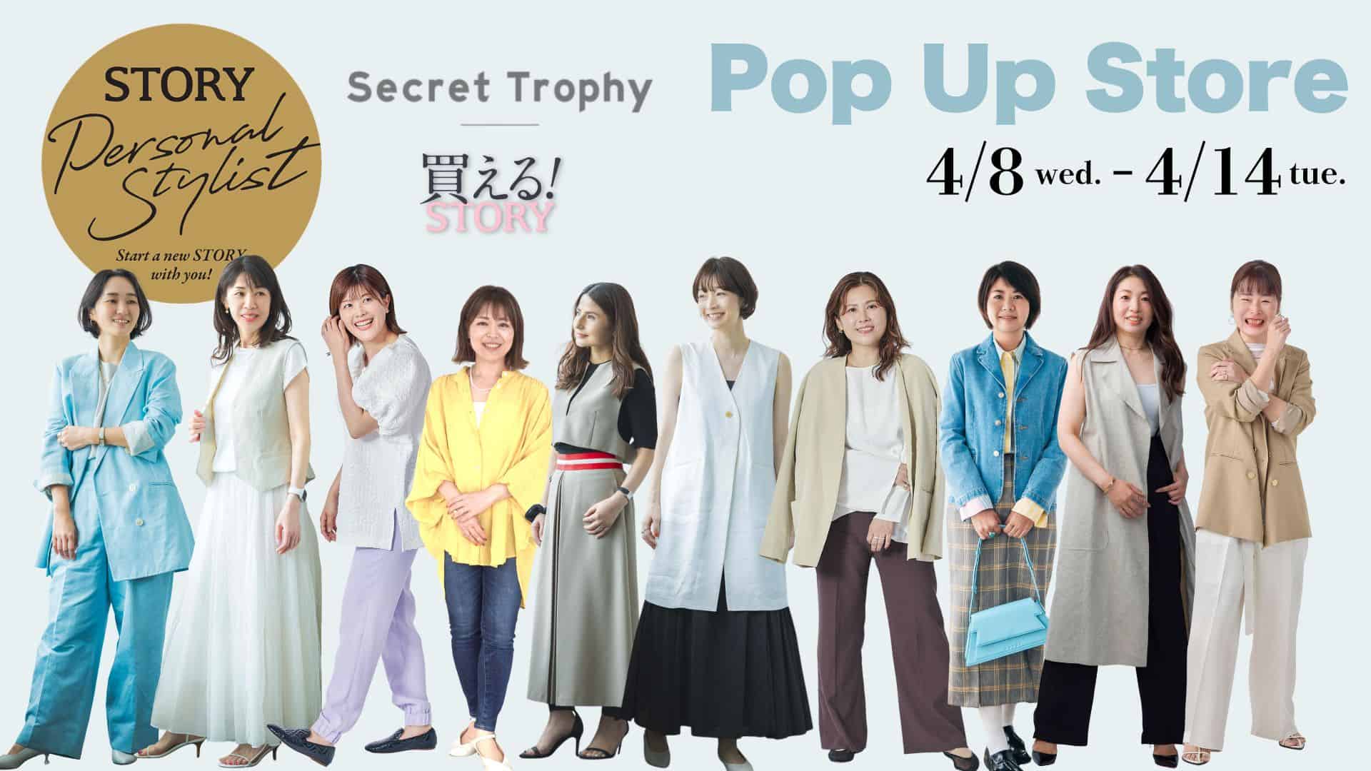 POP UP STOREに立つSTORY認定スタイリストたちは、「Secret Trophy」や「買える!STORY」といったSTORYのEC服を日頃から着こなしています。それだけにPOP UP STOREで並ぶ服についても熟知しているので、各アイテムについての適切なアドバイスが可能。以下の投稿も参考にしてください。
