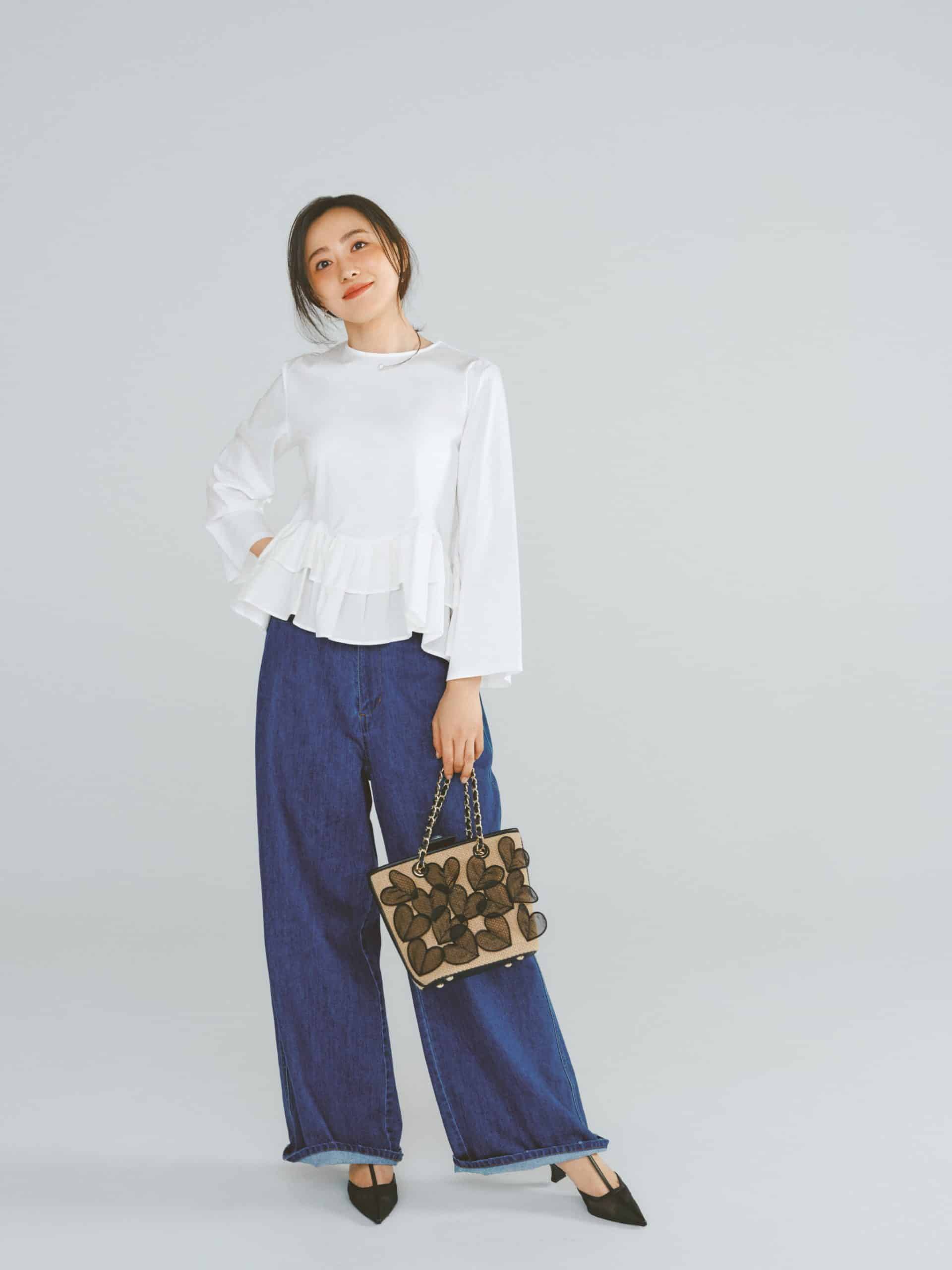 ★ ワイドデニムに合わせるなら、「裾だけフリル」が好バランス