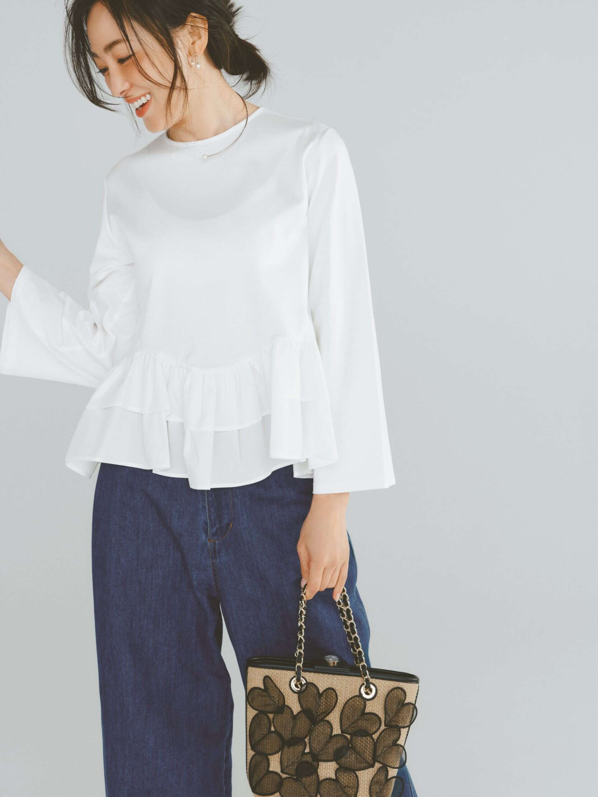ワイドデニムに合わせるなら、「裾だけフリル」が好バランス