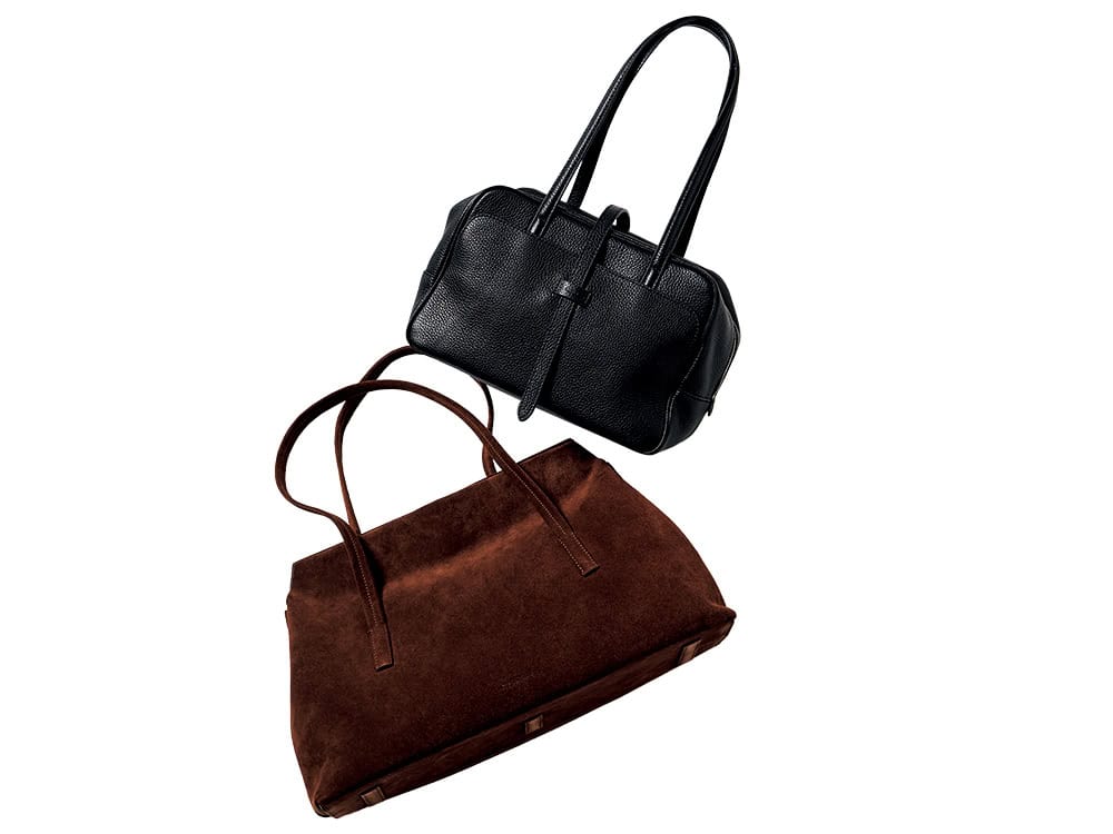 <上>ベルト付きボストン¥55,000 (ヴァジック/ヴァジック ジャパン) <下>スエードバッグ¥99,000 (マエストソ/アマン)