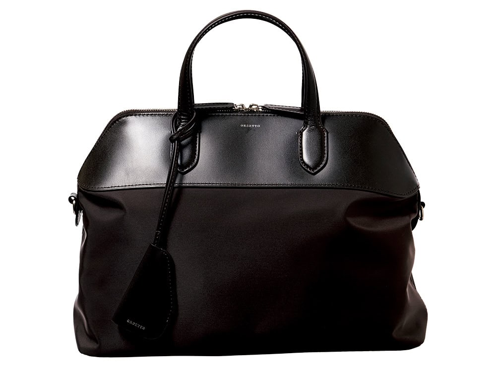 マチが広くて横までファスナーが開くボストンバッグ。トート型もいいけど、今季は樽のような形のボストン型や、ボックス型おすすめ。