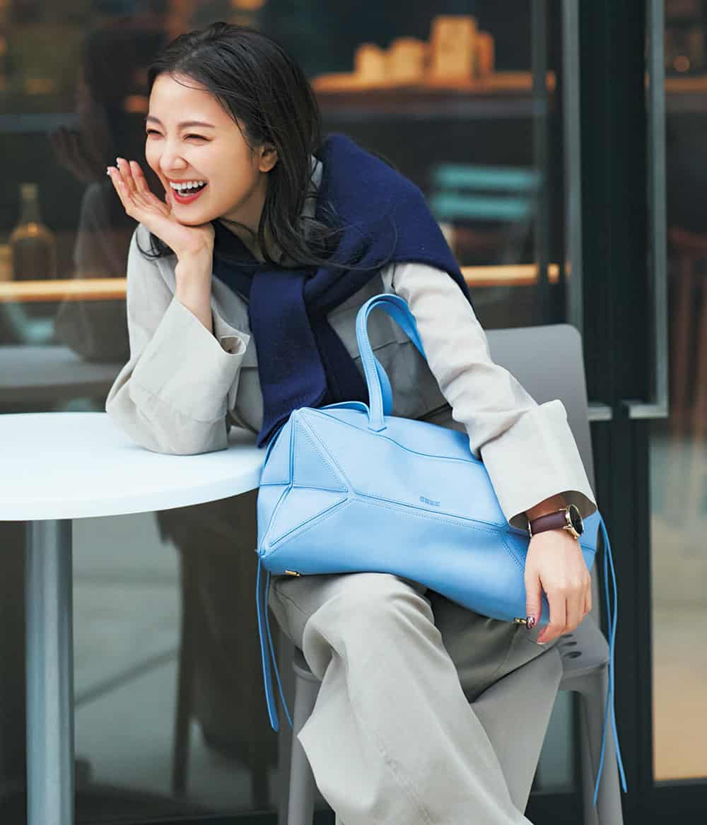 バッグ¥139,293(インク/サロン アダム エ ロペ)ニットカーディガン¥64,900(参考価格)(スポーティ&リッチ/ザ ウォール ショールーム)シャツ¥29,700(コンテ/コンテ 青山店)パンツ¥37,400(レイハ/サードマガジン)時計¥22,000(ete)